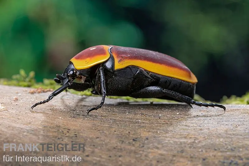 Bei dem Kongo-Rosenkäfer (Aurantia) mit der wissenschaftlichen Bezeichnung Pachnoda marginata aurantia handelt es sich um einen Rosenkäfer (Cetoniinae) aus dem afrikanischen Raum. Insbesondere im namensgebenden Kongo, im Togo, in Benin oder in Nigeria sind die Käfer weit verbreitet. DEN Kongo-Rosenkäfer gibt es nicht. Im Gegenteil! Es existieren verschiedene Unterarten und Varianten. Die Rede ist hierbei vom Pachnoda marginata marginata, dem Pachnoda marginata cerandi, dem Pachnoda marginata fernandezi, dem Pachnoda marginata murielei sowie dem Pachnoda marginata peregrina. Der Pachnoda marginata aurantia ist wunderschön anzusehen. So verfügen die Kongo-Rosenkäfer (Aurantia) beispielsweise über eine attraktive orangegelbe Körperfärbung mit einer markanten gelben Umrandung.