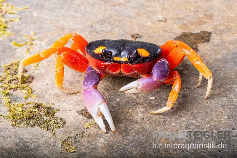 Die Geschlechter der Lila Halloweenkrabben können anhand ihrer äußeren Merkmale unterschieden werden. Männchen haben oft größere Scheren und eine leicht unterschiedliche Körperform als Weibchen.
