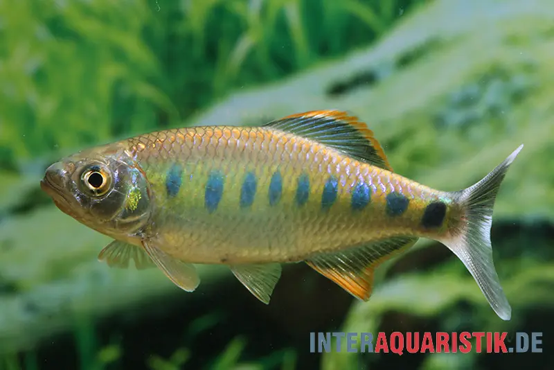 Ein Aquarium ab 100 cm Kantenlänge ist für ausgewachsene Tiere notwendig, um ausreichend Schwimmraum zu bieten. Wichtig sind lange, freie Strecken entlang der Frontscheibe sowie strukturierte Randzonen. Als Bodengrund eignet sich feiner Kies oder grober Sand, ergänzt durch größere Steine, die Strömung lenken und Rückzugsbereiche schaffen. Eine Abdeckung ist empfehlenswert, da die Art sehr sprungfreudig ist.