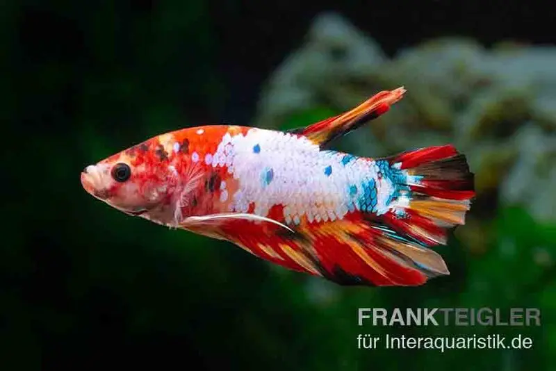 Plakat Kampffische erreichen eine Größe von bis zu 7 cm. Ihre robusten Flossen und kräftigen Farben machen sie zu einer beeindruckenden Erscheinung im Aquarium.