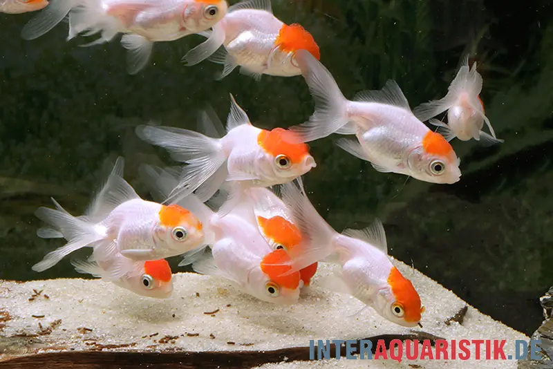 Von einer Vergesellschaftung mit Kois oder sehr aktiven Fischarten ist abzuraten, da diese die empfindlichen Orandas stressen oder gar verletzen könnten.