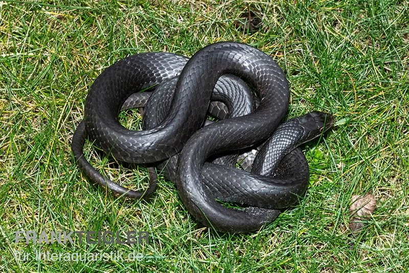 Die Schwarznatter, Coluber constrictor ist eine attraktive Schlangenart aus Nord- und Mittelamerika. Diese Schlangenart hat ein bedrohliches Aussehen, sie ist aber nicht giftig.