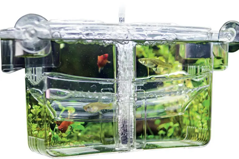 Das Nido 4 Ablaichbecken glänzt außerdem durch weitere Neuigkeiten – z.B. sind im Deckel nun Futterlöcher integriert. So ist ein gezieltes Füttern der Jungfische jederzeit möglich, ohne den Deckel abheben zu müssen. Der Nido 4 kann in zwei separate Abschnitte unterteilt werden. So haben Sie die Möglichkeit gleichzeitig mehrere werdende Mütter unterzubringen und die Jungfische können sich in den unteren Bereich zurückziehen. Mit den beiden dazugehörigen Saugnäpfen ist die Befestigung an der Aquarienscheibe kinderleicht.
