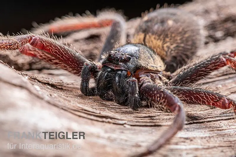 Die Riesenkrabbenspinne wird in Fachkreisen als Heteropoda sp. Indonesien 01 betitelt. Die verhältnismäßig große Spinnen-Art stammt ursprünglich aus dem tropischen und subtropischen Raum. Insbesondere in Asien, Australien und Neuseeland ist sie weit verbreitet. Dort hält sich die nachtaktive Heteropoda sp. Indonesien 01 tagsüber bevorzugt in den Ritzen oder Spalten von Bäumen auf. Erst im Schutze der Dunkelheit geht die Spinne auf Beutezug. Hierbei frisst sie alles, was ihr ins Netz geht. Bei der Riesenkrabbenspinne ist der Name noch Programm. Die Tiere können eine Bein-Spannweite von bis zu 30 cm erreichen. Weitere charakteristische Merkmale wären beispielsweise die markante Beinstellung. So sind die Beine in den Hüften (Coxae) leicht gedreht. Hieraus ergibt sich eine Wendung der Beine nach vorne. Die Beinstellung der Riesenkrabbenspinne weist deutliche Parallelen zu der einer Krabbe auf. Der Körper der Heteropoda sp. Indonesien 01 weist, je nach Exemplar, eine bräunliche oder gräuliche Färbung auf. Die Beine hingegen sind behaart und auffällig bedornt.