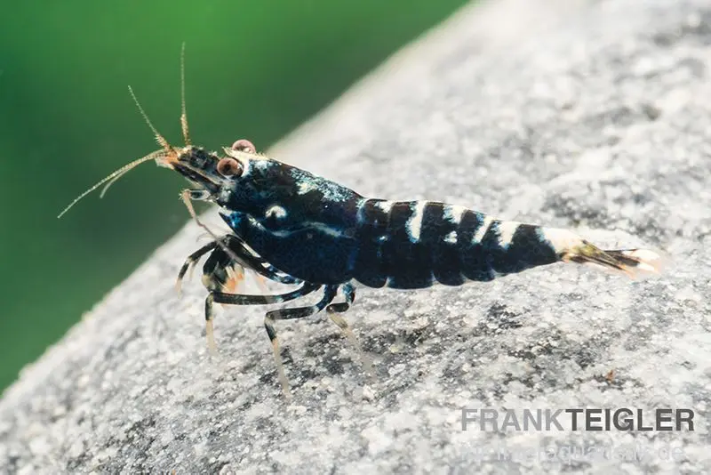 Die Black Pinto Garnele Mix ist eine der außergewöhnlichsten Farbvarianten der Taiwan Bee Garnelen. Durch gezielte Selektion in der Zucht entstand diese einzigartige Garnele mit ihrem schwarz-weißen Muster, das in verschiedenen Variationen auftreten kann. Diese Hochzuchtform stammt ursprünglich aus Taiwan und wird dort von erfahrenen Züchtern weiterentwickelt. Es handelt sich ursprünglich um eine Mischung aus Bienengarnele und Tigergarnele.