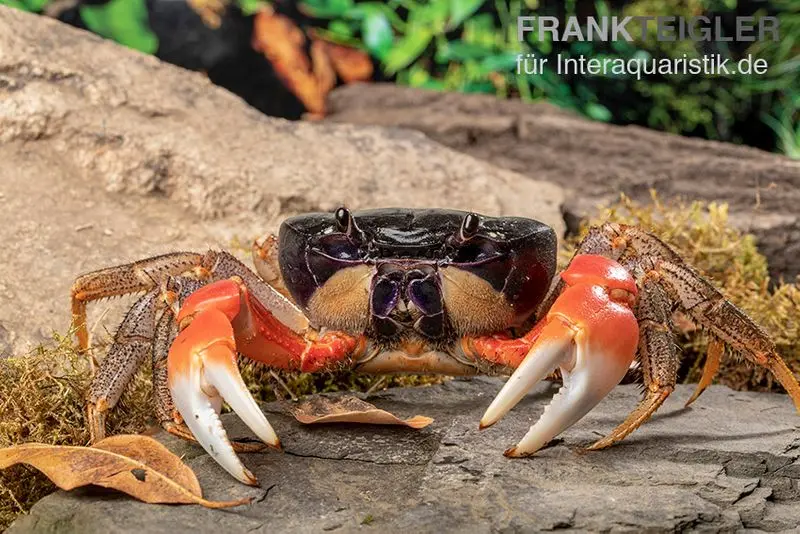 Die Waldkrabbe bewohnt die feuchten Regenwälder und sumpfigen Küstenregionen des Indo-Pazifiks, insbesondere auf den Philippinen und in Indonesien. Dort lebt sie in feuchten Erdspalten, unter Wurzeln oder zwischen Laubschichten. Sie ist nachtaktiv und verbringt den Großteil des Tages in ihrem selbst gegrabenen Unterschlupf. Nachts geht sie auf Nahrungssuche, wobei sie sowohl tierische als auch pflanzliche Kost aufnimmt. Ihre markante Erscheinung mit kräftigen Scheren und dunklem Panzer macht sie zu einer eindrucksvollen Erscheinung im Terrarium.