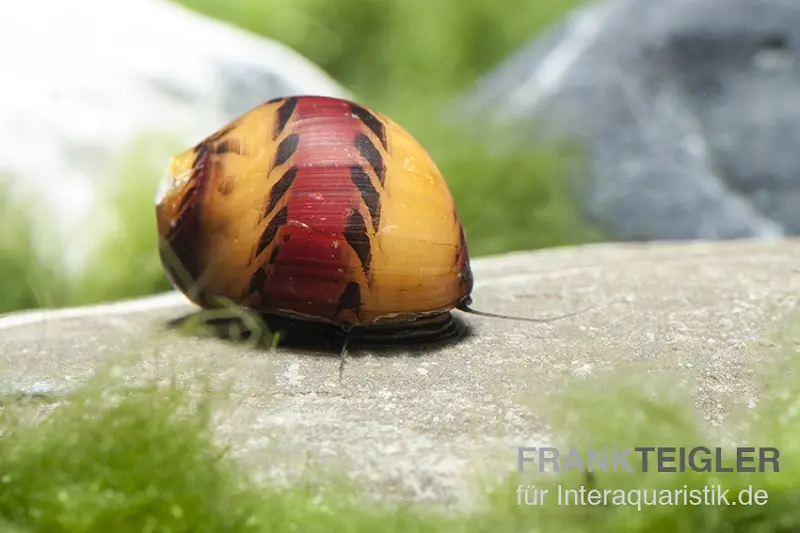 Diese Schnecke ernährt sich hauptsächlich von Algen und Aufwuchs. In sauberen Aquarien kann es notwendig sein, sie mit Spirulina-Tabletten oder speziellem Schneckenfutter zu ergänzen, um eine ausreichende Nährstoffversorgung sicherzustellen.