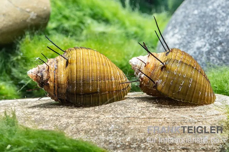 Die Haarige Turmdeckelschnecke ist absolut friedlich und ideal für die Vergesellschaftung mit Zwerggarnelen. Sie trägt durch das Fressen von Futterresten zur Sauberkeit des Aquariums bei.