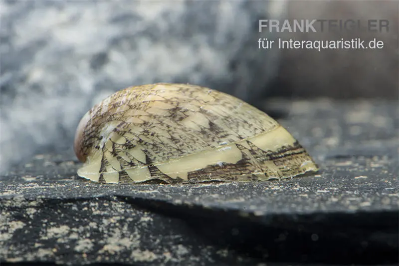 Die Muschelschnecke ist ein friedlicher Bewohner im Aquarium und kann problemlos mit Zwerggarnelen, kleinen Welsen und friedlichen Fischarten vergesellschaftet werden. Allerdings sollte man auf Fische verzichten, die an Schnecken saugen oder nagen, wie Raubschnecken, bestimmte Schmerlen oder große Buntbarsche.
