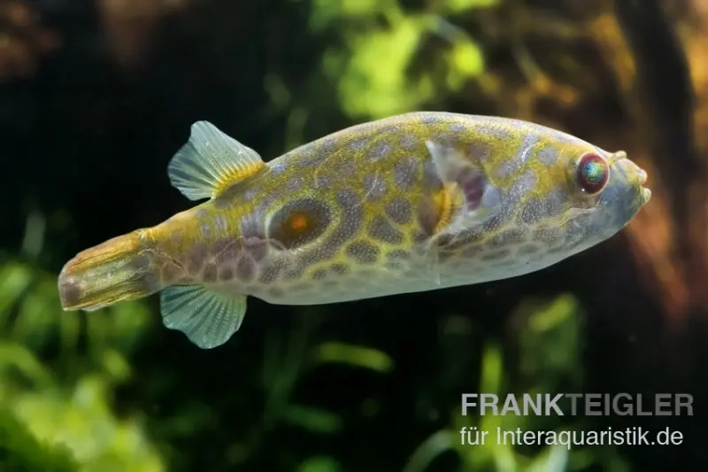 Nicht einfach aber exotisch: Tetraodon leiurus. Tetraodon leiurus, auch Kurznasiger Leierkugelfisch oder Leopard Kugelfisch genannt, stammt aus Thailand und Indonesien.