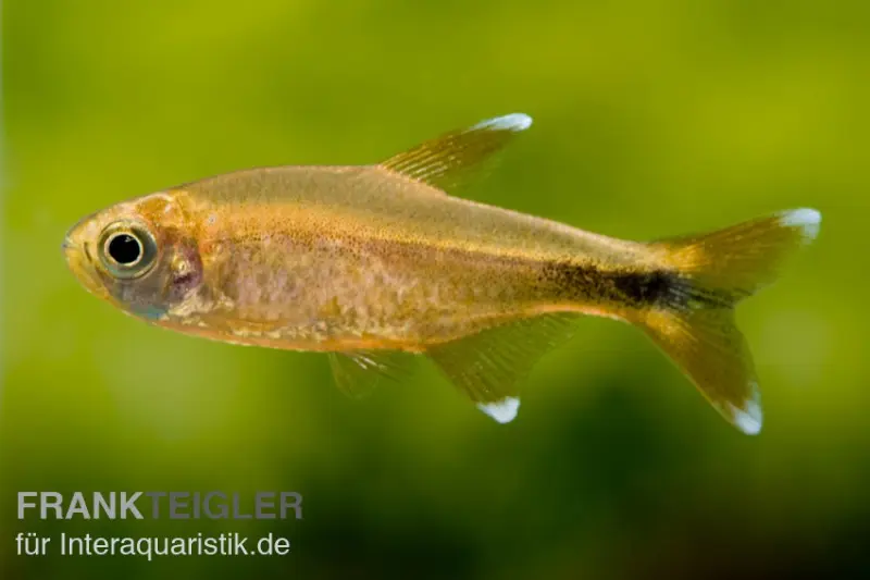 Der Kupfersalmler (Hasemania marginata) gehört zu den charmantesten kleinen Salmlerarten aus Südamerika. Er stammt aus den klaren bis leicht trüben Fließgewässern des oberen Amazonasbeckens sowie aus dem Gebiet des Rio São Francisco in Brasilien. Dort bewohnt er vor allem Randbereiche von Flüssen, Bächen und Überschwemmungsgebieten mit dichter Ufervegetation. Der Kupfersalmler fällt durch seine lebendige, metallisch kupferfarbene Grundfärbung auf, die je nach Lichteinfall intensiv schimmert. Eine schwarze Schwanzwurzelmarkierung sowie transparente Flossen mit weißer Spitze runden das charakteristische Erscheinungsbild ab. Diese Art gilt als besonders schwimmfreudig, lebhaft und friedlich, weshalb sie sich hervorragend für gut strukturierte Gesellschaftsaquarien eignet.