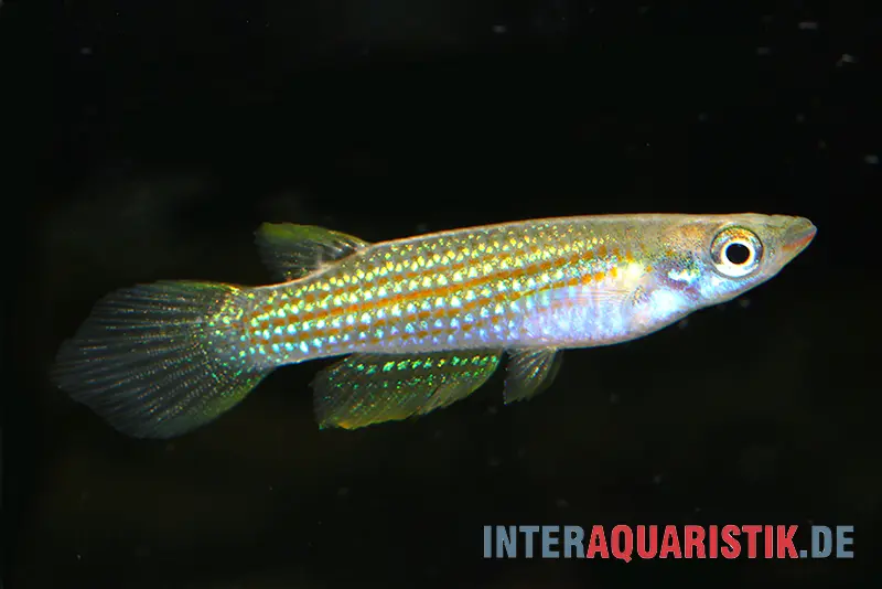 Der Madras-Hechtling (Aplocheilus blockii), auch als Blockii-Hechtling oder Südindischer Hechtling bekannt, stammt aus den tropischen Regionen Südindiens und Sri Lankas. Seine natürlichen Lebensräume sind langsam fließende Bäche, stehende Gewässer und auch brackige Tümpel, in denen er sich vorzugsweise in der Nähe der Wasseroberfläche aufhält. Aplocheilus blockii zählt zur Familie der Eierlegenden Zahnkarpfen (Aplocheilidae) und beeindruckt besonders durch seine lebhafte, schillernde Farbgebung. Männchen tragen ein auffälliges Punktmuster in Türkisblau sowie orangefarbene Längsstriche auf goldenem Grund, während die Weibchen dezenter gefärbt sind. Charakteristisch sind das ruhige Schwimmverhalten und die gelegentliche Jagd nach kleinen Insekten – ein faszinierender Anblick im Aquarium.