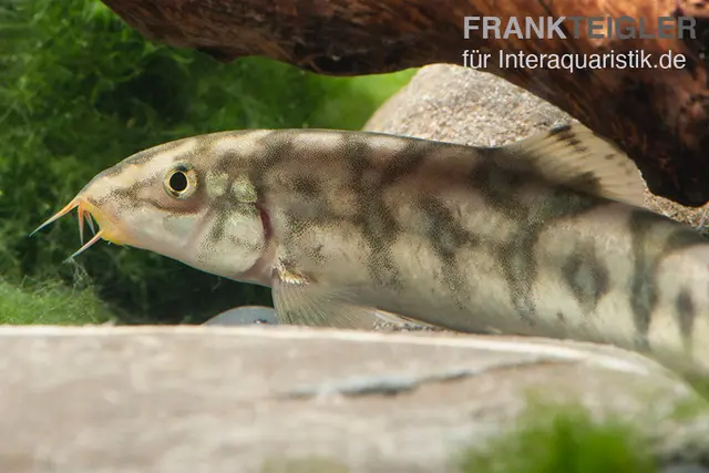 Die Netzschmerle (Botia lohachata) stammt aus den Flusssystemen Nordindiens, Nepals und Bangladeschs. Dort bewohnt sie klare, sauerstoffreiche Gewässer mit sandig-kiesigem Untergrund und dichter Ufervegetation. Zwischen Steinen, Wurzeln und Laubschichten sucht sie nach kleinen Wirbellosen. Ihr netzartiges, silbergraues Muster mit dunklen Linien erinnert an ein Mosaik – daher der Name. Besonders in der Strömung zeigt sie ihre elegante, fließende Bewegung.