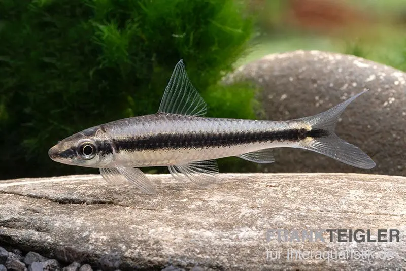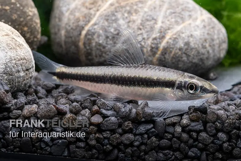 Der Siamesische Algenfresser (Crossocheilus siamensis) zählt zu den bekanntesten Aufwuchsfressern im Süßwasseraquarium. Die Art bewohnt in der Natur fließende Gewässer mit steinigem Untergrund, Wurzeln und wechselnden Strömungszonen. Dort ernährt sie sich überwiegend von Algenbelägen, Biofilmen und pflanzlichem Aufwuchs, die von festen Oberflächen abgeweidet werden. Charakteristisch ist der langgestreckte, stromlinienförmige Körper mit dem durchgehenden dunklen Seitenband, das bis in die Schwanzflosse reicht. Dieses Merkmal unterscheidet die Art von ähnlich aussehenden Rüsselbarben. Historisch wurde der Siamesische Algenfresser mehrfach anderen Gattungen zugeordnet, weshalb ältere Bezeichnungen wie Epalzeorhynchus siamensis oder Epalzeorhynchus oblongus noch im Umlauf sind. Mit zunehmender Größe entwickelt die Art ein ruhigeres, zielgerichtetes Verhalten und nutzt bevorzugte Bereiche im Aquarium sehr bewusst.