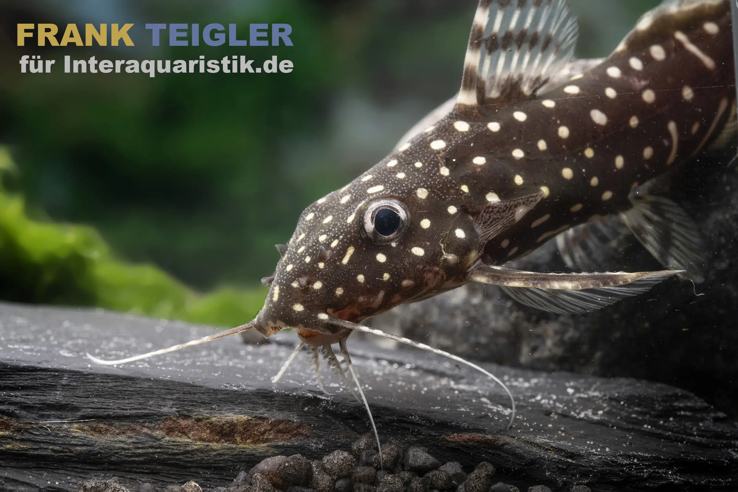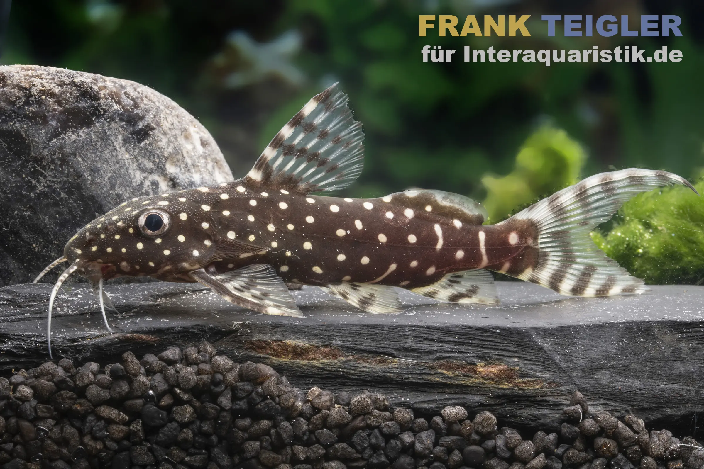 Der Perlhuhnwels schädigt keine Pflanzen, kann jedoch durch seine Grabaktivität empfindlich verwurzelte Arten beeinträchtigen. Robuste Pflanzen wie Anubias oder Javafarn eignen sich gut, besonders wenn sie auf Dekoration aufgebunden sind. Schwimmpflanzen schaffen gedämpftes Licht, das dem natürlichen Lebensraum entgegenkommt.
