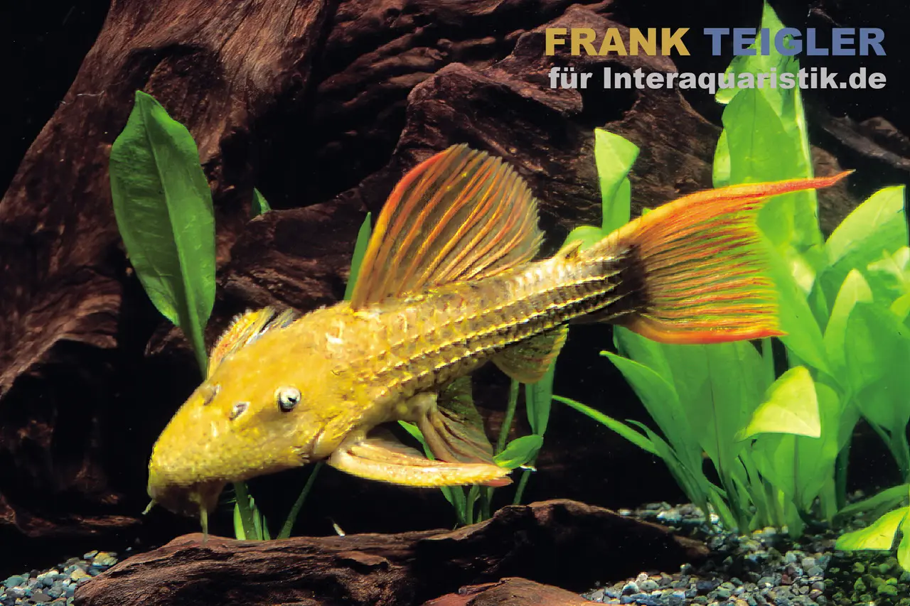 Der Rotflossen-Kaktuswels (Pseudacanthicus cf. serratus, L24), international bekannt als Fire Fin Cactus Pleco, ist ein eindrucksvoller Großwels aus dem Rio Tocantins in Brasilien. Dort lebt er in strömungsreichen Flussbereichen mit felsigem Untergrund, Wurzeln und vereinzelten Rückzugsorten. Typisch für diese Art sind die kräftig rot gefärbten Flossensäume, die stark mit der sonstigen Körperfärbung kontrastieren. L24 gehört zu den markantesten Vertretern der Gattung Pseudacanthicus und zählt mit seiner massiven Statur und intensiven Färbung zu den beliebtesten Schauwertwelsen. Je nach Herkunftsfluss und individueller Ausprägung können Tiere von tiefbraun mit rötlichen Flossen bis hin zu fast goldgelben Körperfarben mit orange leuchtenden Flossen variieren. Diese Farbvariabilität ist bei L24 natürlich und Ausdruck unterschiedlicher Fundorte.