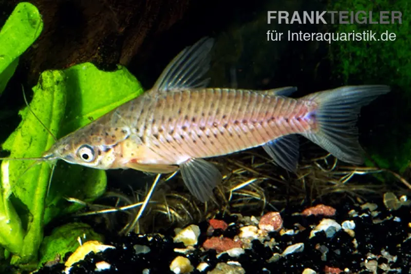 Robuste Pflanzen wie Amazonas-Schwertpflanzen oder Anubias bieten gute Versteckmöglichkeiten. Freie Schwimmräume sollten erhalten bleiben, da die Welse gerne im unteren Beckenbereich aktiv sind.