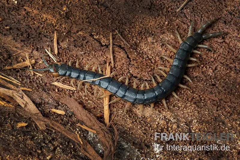 Hinweis: Die Tiere dürfen nicht mit der Hand angefasst werden und müssen ausbruchsicher verwahrt werden. Die Skolopender können schmerzhafte Bisswunden verursachen und dabei Gift in die Wunde absondern.