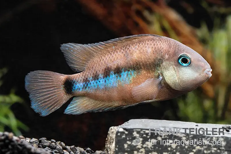 Die Zucht gelingt meist problemlos. Nach der Paarbildung sucht sich das Weibchen einen geeigneten Laichplatz, meist eine Höhle oder ein geschützter Spalt. Die Eier werden dort abgelegt und vom Männchen bewacht. Beide Eltern zeigen intensive Brutpflege: Sie verteidigen das Revier, bewachen die Eier und führen die geschlüpften Jungfische. Für eine erfolgreiche Aufzucht sind stabile Wasserwerte und abwechslungsreiche Kost entscheidend.