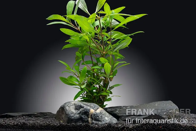 Der Zweigestreifte Wasserfreund, wissenschaftlich bekannt als Hygrophila corymbosa, ist eine Aquarienpflanze, die ursprünglich aus den tropischen Regionen Südostasiens stammt. Dort wächst sie in stehenden und langsam fließenden Gewässern, oft an Ufern mit hoher Feuchtigkeit. Ihre länglichen, grünen Blätter mit markanter Blattaderung machen sie zu einer dekorativen Wahl für die Gestaltung von Aquarien. Diese Pflanze ist für ihre Robustheit und schnelle Anpassungsfähigkeit bekannt.